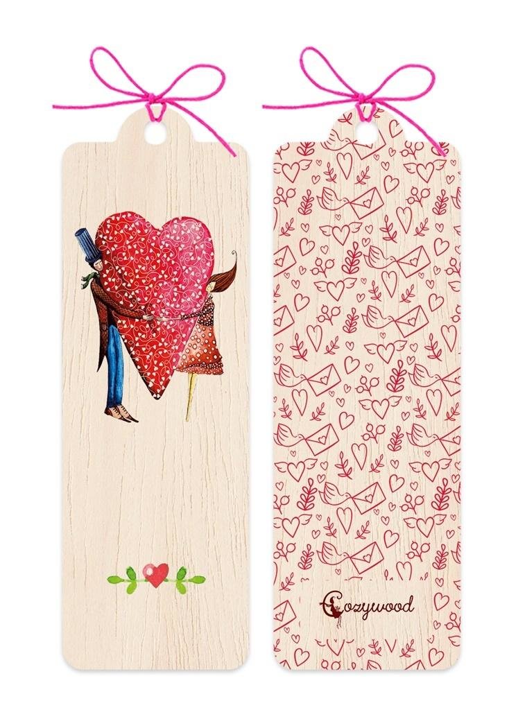 Zakładka drewniana Para serce