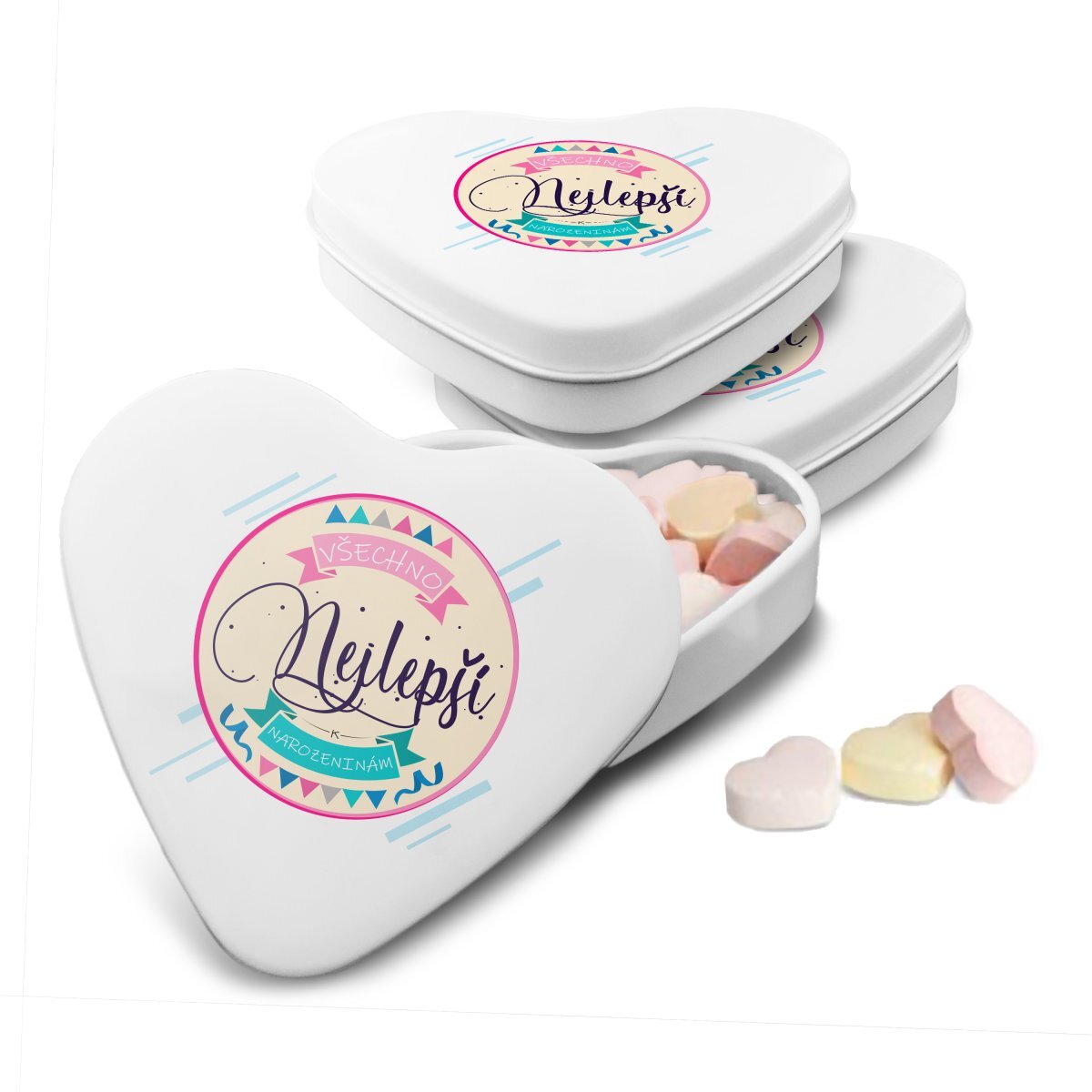 Bonbónky v srdíčkové krabičce s originálním motivemBonbónky jsou malým dárečkem pro potěšení a je vhodné darovat je jako doplněk s jiným dárkem z našeho e-shopu nebo v dárkové krabičce s ostatními produkty.Udělejte radost malým dárkem do kapsy, sladkými bonbóny v kovové krabičce ve tvaru srdce....