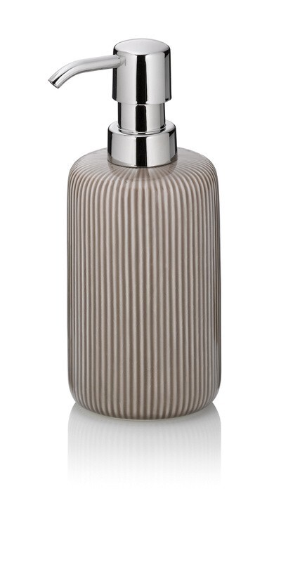 Barva pro vaši koupelnu: velký, krásný keramický dávkovač mýdla Ava o objemu 350 ml. Dávkovač mýdla zaujme svou kamennou šedou barvou. Výměnná hlava čerpadla je vyrobena z plastu, pochromovaná. Výška: 17,5 cm Keramika 7,5 cm, v. 17,5 cm číst celé