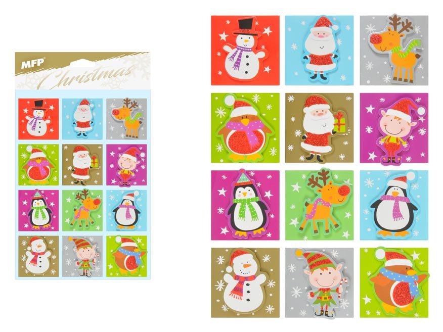 Papírové 3D jmenovky na dárky, s glitrem, obsahují samolepku, rozměr jednotlivé jmenovky je 5x5cm, na archu 12 kusů. číst celé