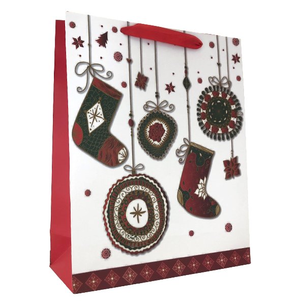 Dárková vánoční taška Vánoční punčocha - červený pruh 25,5x31x10cm