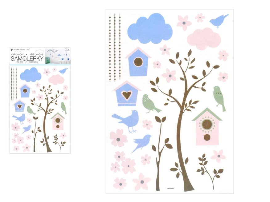 Pokojová samolepící dekorace strom a budky. Vhodná na stěny, dveře, okna, zrcadla a jiné hladké plochy. Tato samolepka na zeď v mžiku oživí Váš obývací pokoj, koupelnu, chodbu, dětský pokoj či ložnici.NÁVOD:1. Opatrně sejměte samolepku z podkladového papíru a umístěte ji na zvolenou suchou,...