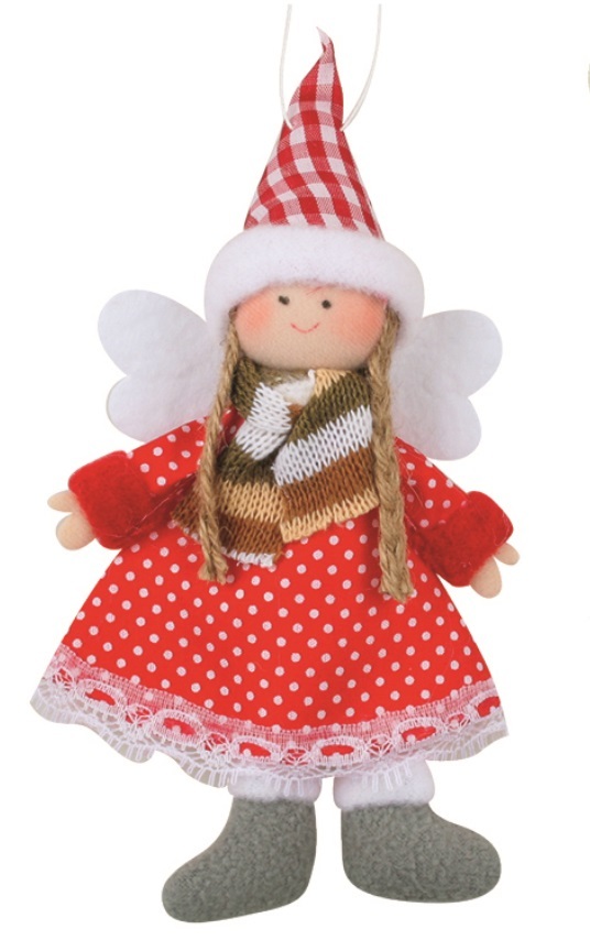 Anděl v červených šatech na zavěšení 18 cm