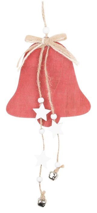 Zvonek dřevěný na zavěšení 11,5 x 20 cm, červený