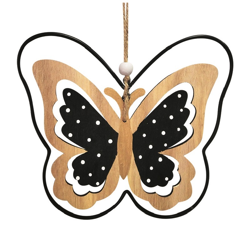 Motýl dřevěný s kovovým obvodovým prvkem na zavěšení 11 x 9 x 0,5 cm
