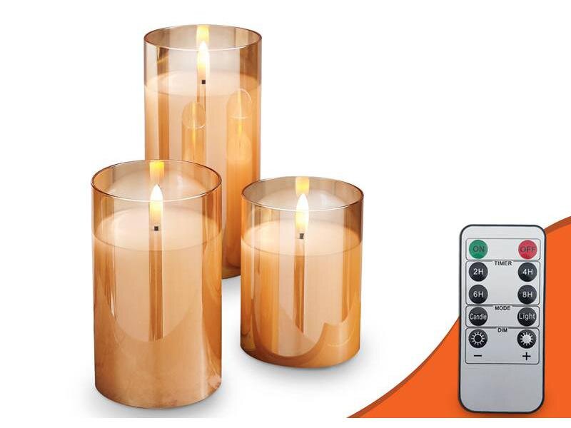 Elegantní kombinace designu a technologie přináší teplé a příjemné světlo bez starostí s otevřeným ohněm. S touto sadou tří voskových LED svíček v pozlaceném skle proměníte každý prostor v útulné místo plné kouzla.