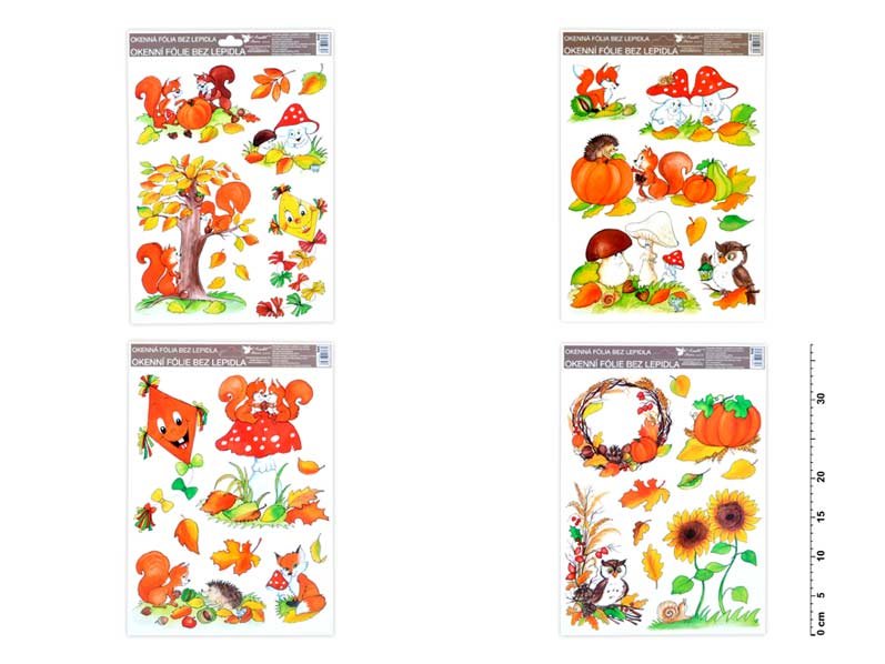 Okenní fólie - ručně malovaný podzim - sovy, veverky, lišky. Vyzdobte si okno těmito krásnými samolepkami na okno. Vytvoří Vám kouzelnou atmosféru domova. Na plochu přilnou elektrostaticky a nezanechávají tedy po sobě žádnou stopu.NÁVOD:1. Sloupněte z podložky obrázek a umístěte na čisté,...