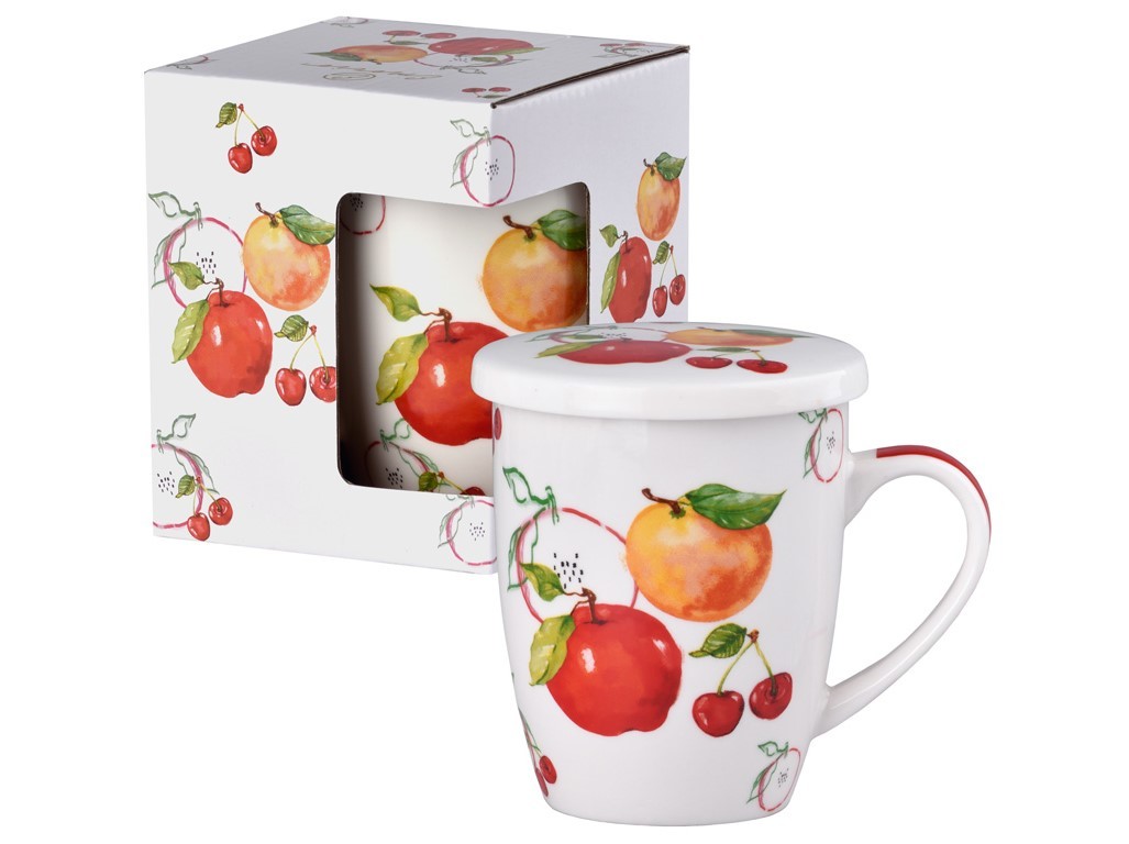 Hrnek s originálním ovocným designem, vybavený praktickým sítkem a víčkem, je ideální volbou pro všechny, kteří si chtějí vychutnat své oblíbené nápoje s nádechem elegance a komfortu.