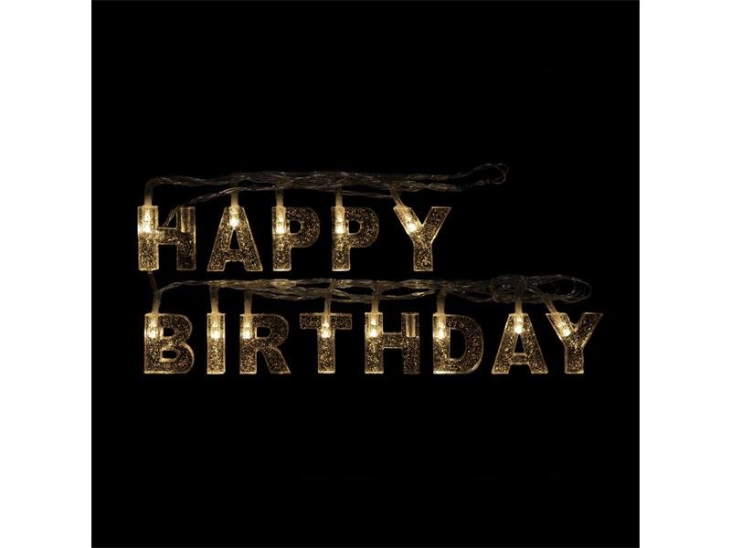Posuňte dekoraci narozeninových oslav a večírků na vyšší úroveň s tímto LED světelným řetězem s nápisem "Happy Birthday", písmena osvětluje teplá bílá LED. Úspěch je zaručný. Díky provozu s bateriemi ji můžete umístit kdekoliv.