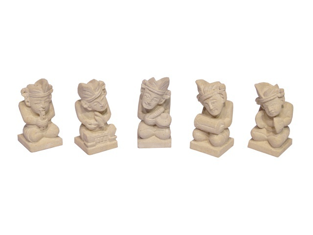 Kamenný set pěti hudebníků, hrajících na různé nástroje. Sošky jsou ručně vyráběné na indonéském ostrově Bali.Hmotnost: 1 200 g číst celé