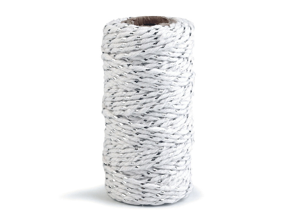 Bavlněná šňůra / provázek Ø1,5 mm s lurexem, vánoční - 40 ks - 1 bílá stříbrná