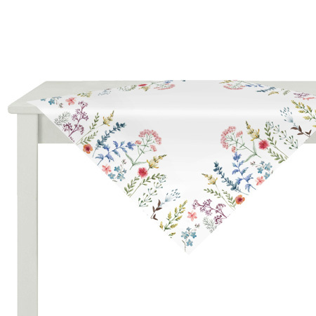 Ubrus s motivem lučních květů, barva bílá, 80x80 cm,100 % polyester.