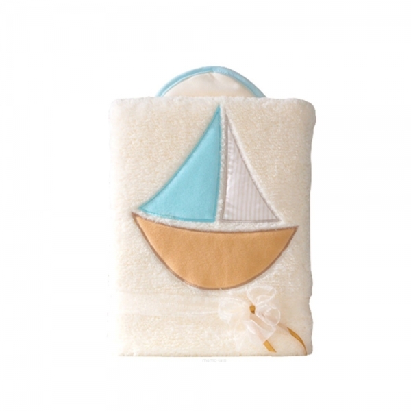 Oboustranná chlupáčková dečka s vyšívkou 75 x 90 cm, Lodička, béžová