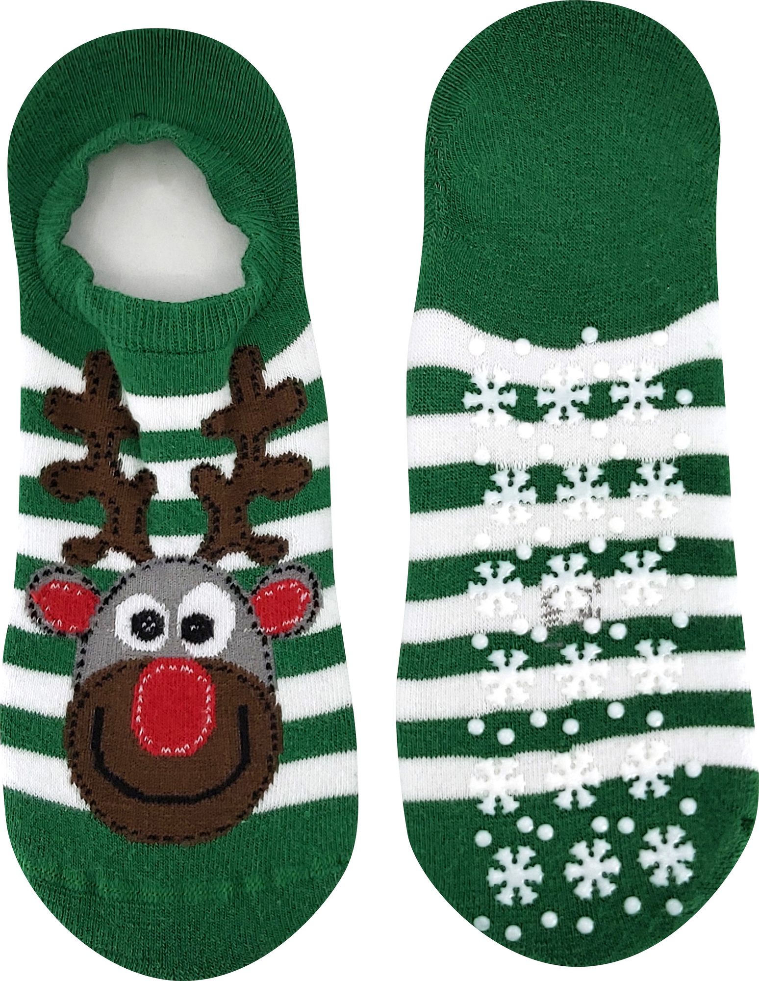 Dámské silné celofroté ponožky z bavlny Lonka® CUPID jsou extra krátké ponožky s protiskluzným ABS ve tvaru vloček na chodidle. Špice je sešitá jemným řetízkováním, spoj je tak hladký. Pruhovaný design zdobí "vánoční" motiv sobíka. Ponožky se dají nosit místo bačkor! číst celé