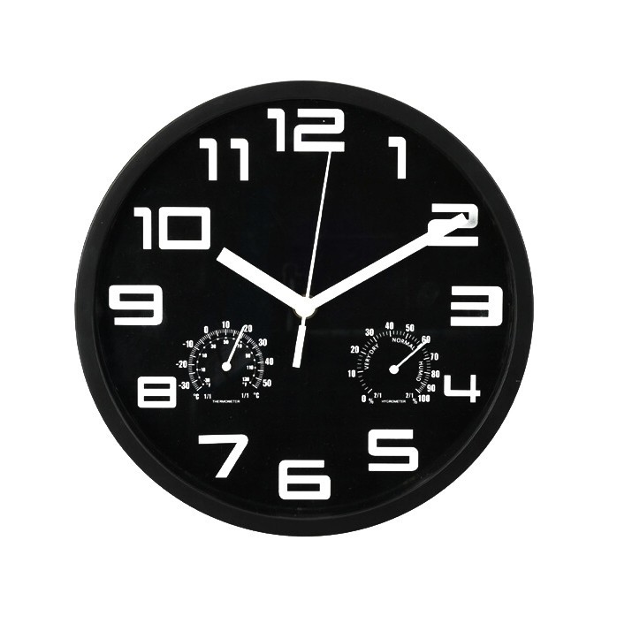 Nástěnné hodiny s teploměrem a vlhkoměrem 25 cm černá