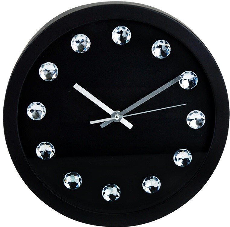 Nástěnné hodiny ručičkové s krystaly 30 cm černá