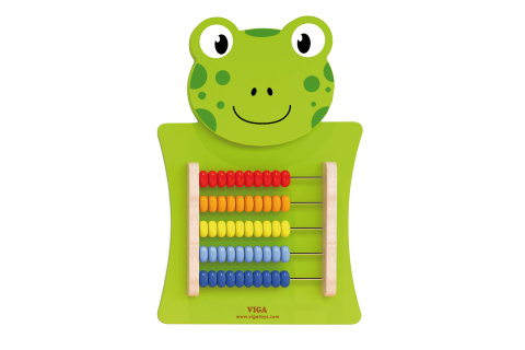 Dřevěná nástěnná hra s motivem žáby. Velikost cca 36 x 55 x 4,5 cm. Jedná se o nástěnné počítadlo. Rozměry balení cca 38,5 x 57 x 5,5 cm. Věk 18m+ číst celé
