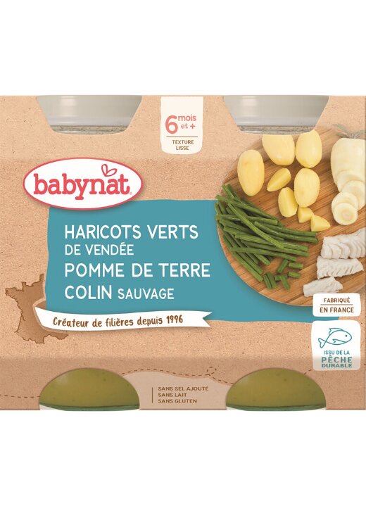 Výrobek obsahuje zelné fazolky z francouzského údolí řeky Loiry, jemné brambory a pastinák, doplněné o chutnou a výživnou aljašskou tresku z volného moře. Ryby jsou získávány pouze udržitelným způsobem dle pravidel volného výlovu, což znamená, že jsou šetrné k přírodě a zaručují vysokou kvalitu suroviny. Ostatní složky jsou v BIO kvalitě, bez přidaných cukrů, soli, palmového oleje a chemických přísad.