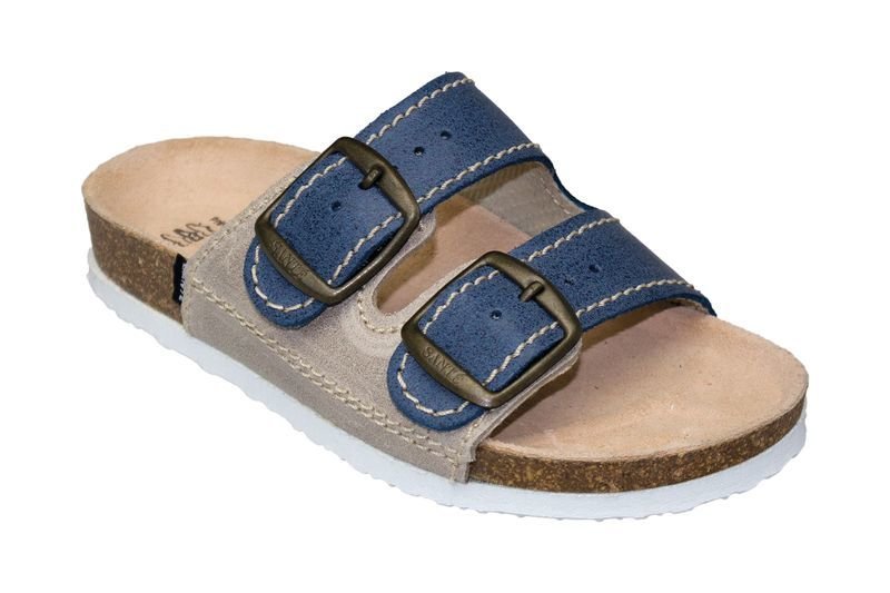 Zdravotní obuv - dětské pantofle,barva: tmavě modrá, šedá,podešev: bílá,stélka: anatomicky tvarovaná, kožená,materiál: kůže,přezky pro upravení velikosti,obuv podporující správný vývoj nohy. číst celé