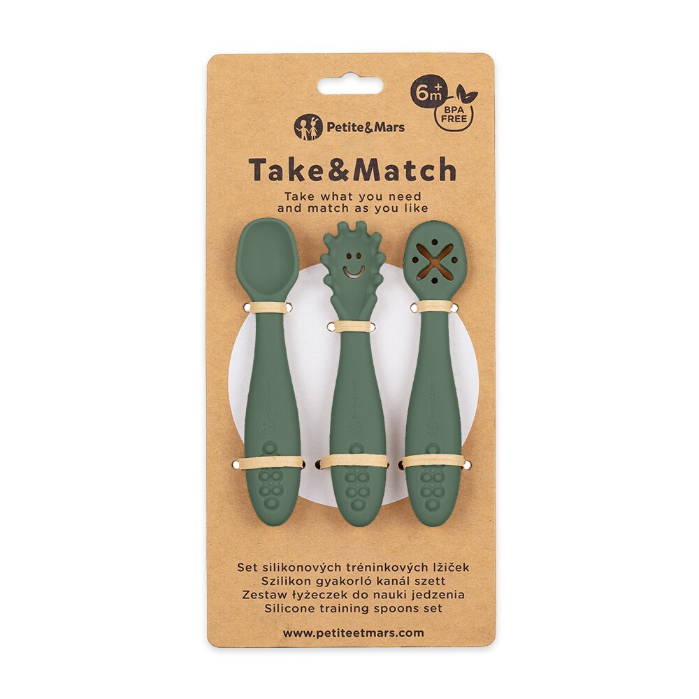 PETITE&MARS Set 3 ks silikonových tréninkových lžiček Take&Match Misty Green 6m+