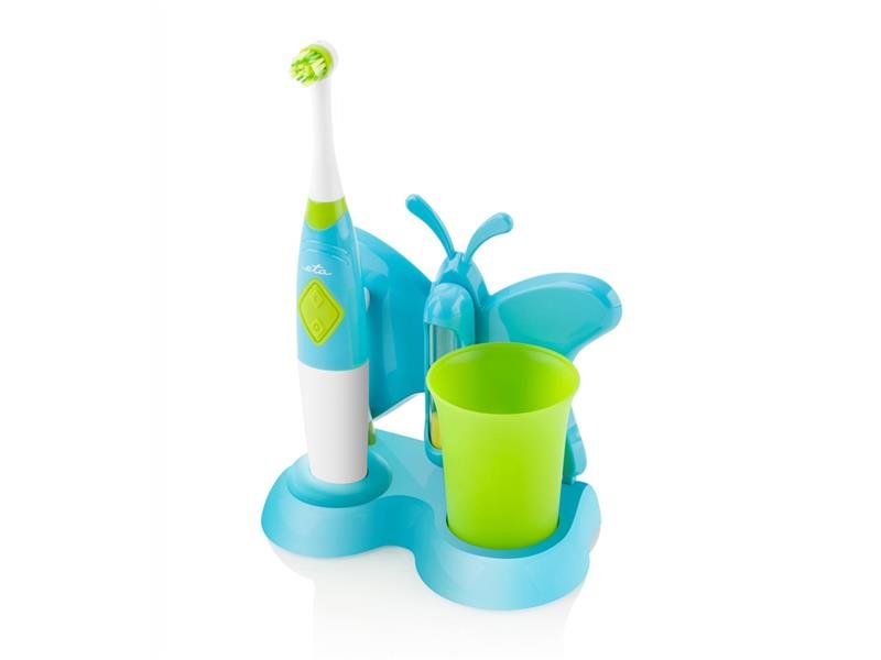 Díky bateriovému provozu a jemnému, ale účinnému systému čištění pomáhá kartáček udržovat zdravý chrup již od útlého věku. Odnímatelné čistící hlavice s barevným rozlišením usnadní hygienu pro celou rodinu, zatímco vodotěsné provedení umožňuje bezpečné používání i v koupelně. Modro-zelená barevná kombinace spolu s přiloženými obrázkovými samolepkami zpříjemňuje a zpestřuje čas ústní hygieny, což z něj činí ideální pomocníka pro malé děti.