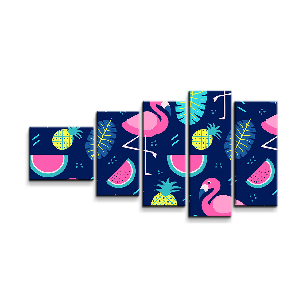Obraz - 5-dílný Růžoví plameňáci: 100x60 cm