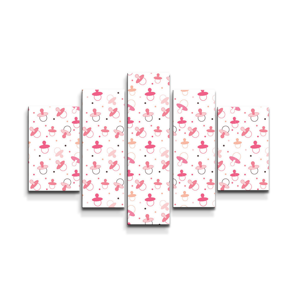 Obraz - 5-dílný Růžoví dinosauři: 125x90 cm