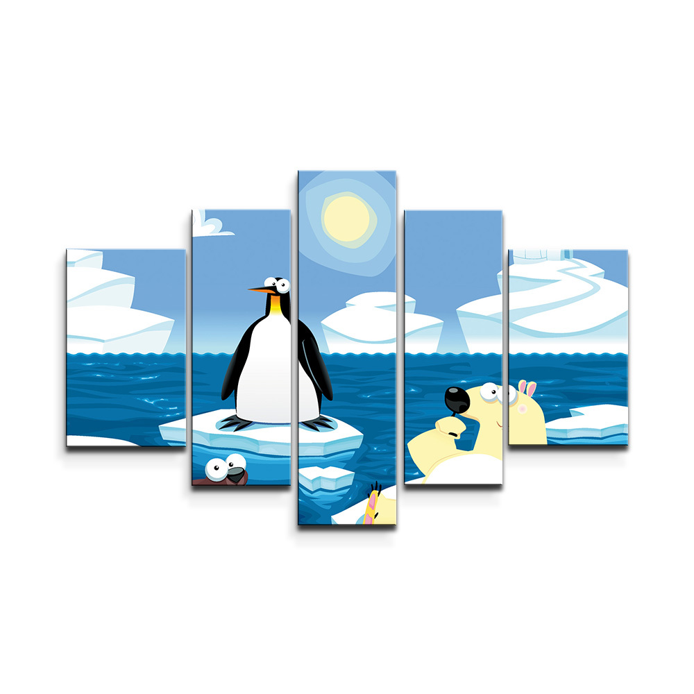 Obraz - 5-dílný Lední zvířátka: 125x90 cm