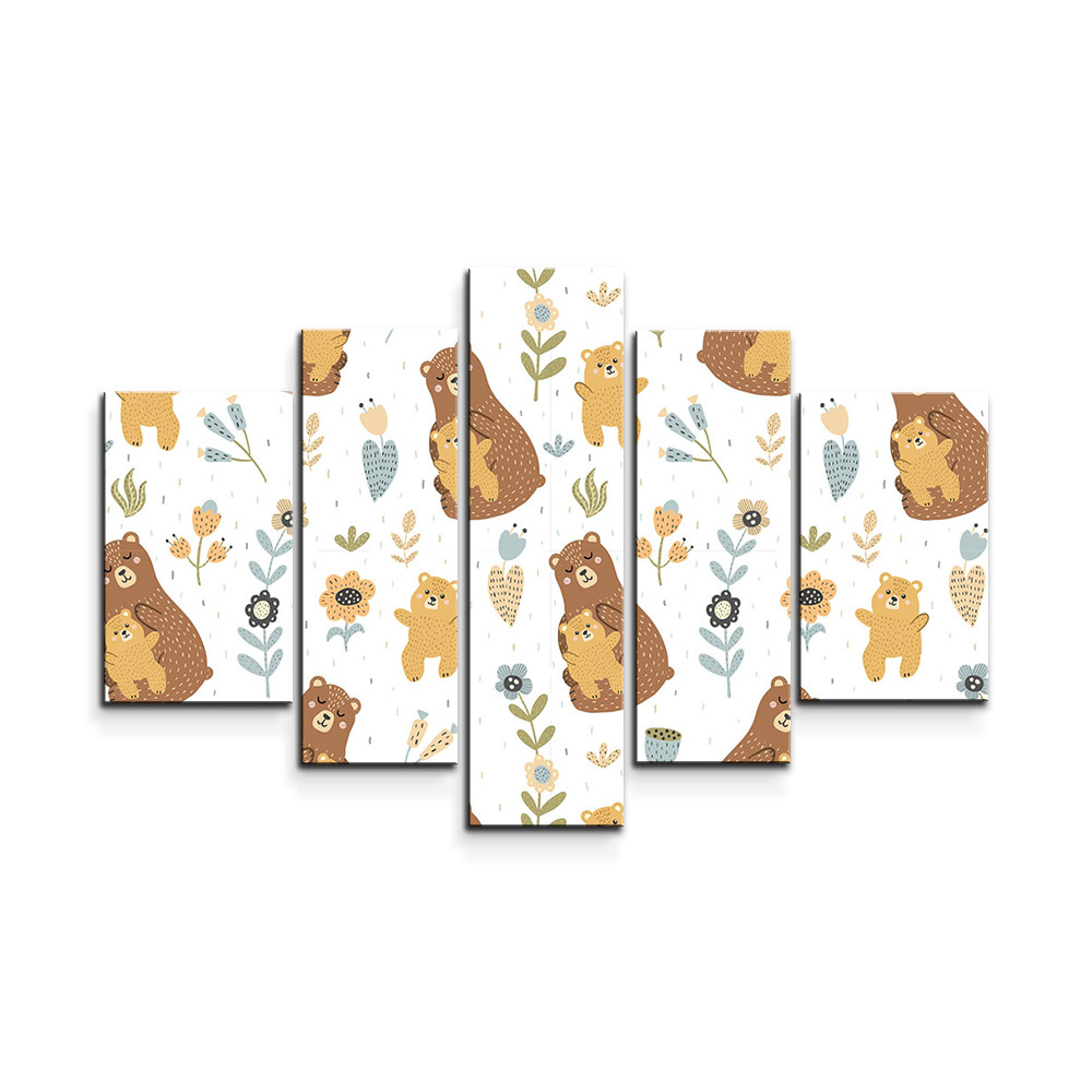 Obraz - 5-dílný Medvědi: 125x90 cm