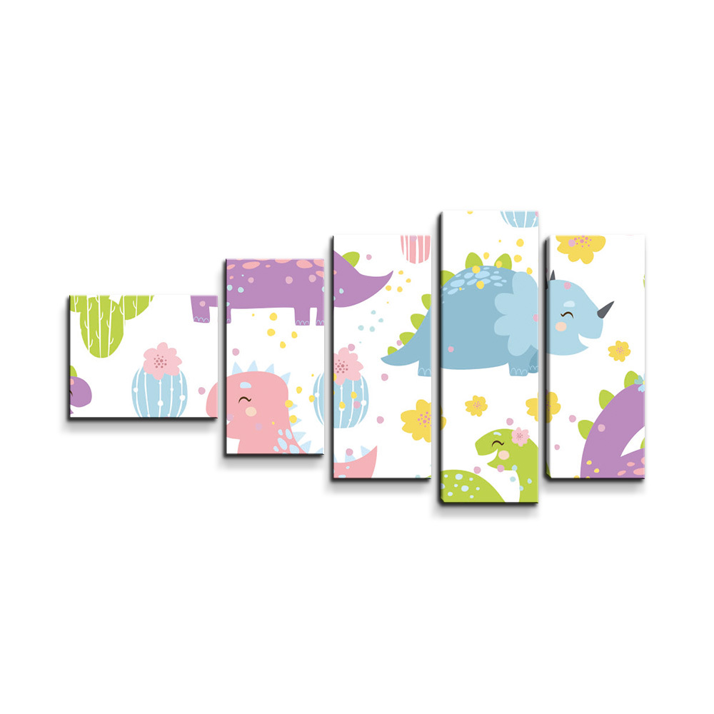 Obraz - 5-dílný Dinosauři s kaktusy: 100x60 cm