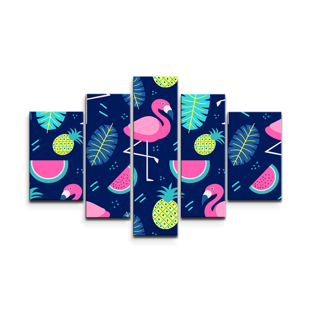 Obraz - 5-dílný Růžoví plameňáci: 125x90 cm
