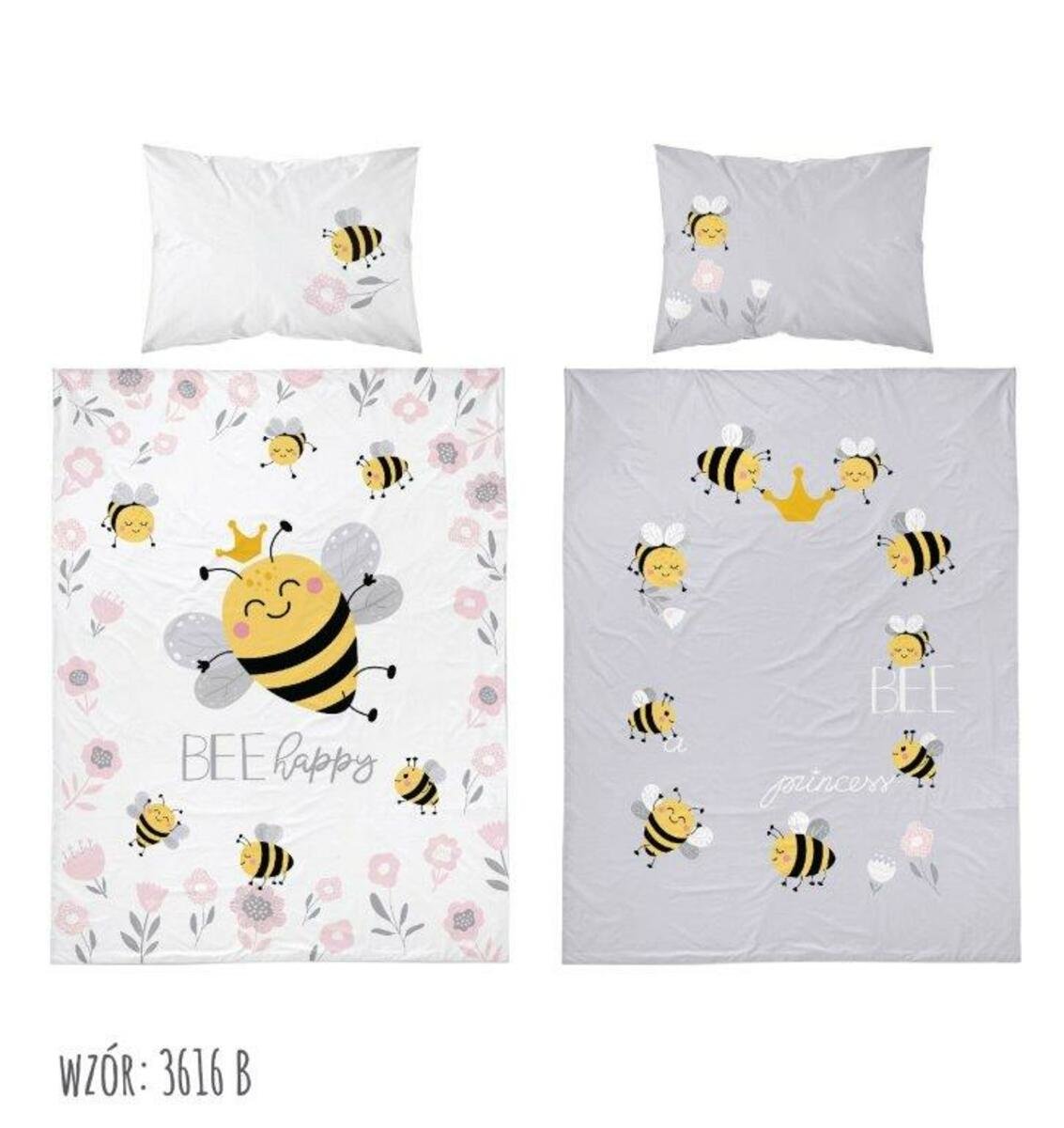 Povlečení dětské do postýlky, Včelky, šedý