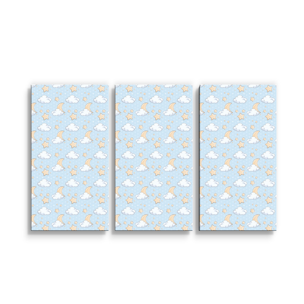 Obraz - 3-dílný Měsíčky, hvězdičky a mráčky: 120x80 cm