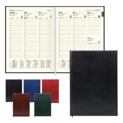 Format B5Ilość stron: 112Dostępne kolory: czarny, granatowy, bordo, zielony, brązOprawa: twarda skóropodobna + gąbkaUkład środka: tydzień na 2 stronachWewnątrz tasiemka do oznaczania stron ułatwia odnajdywanie ważnych notatek lub ostatnio zapisanej stronyPapier: 70 g/m2 w kolorze ecruKalendarium:...