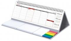 Wygodny kalendarz stojący na biurko z przejrzystym kalendarium w układzie tygodniowym z miejscem do notowania. Poręczne samoprzylepne karteczki. Kalendarium na spirali.W kalendarzu zaznaczone święta. Na tylnej części podstawki kalendarza istnieje możliwość naniesienia reklamy na obszarze o...