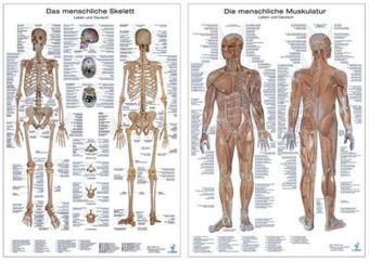 Muskelsystem, Lerntafel. Skelettsystem, Lerntafel, 2 Tafeln (německy)