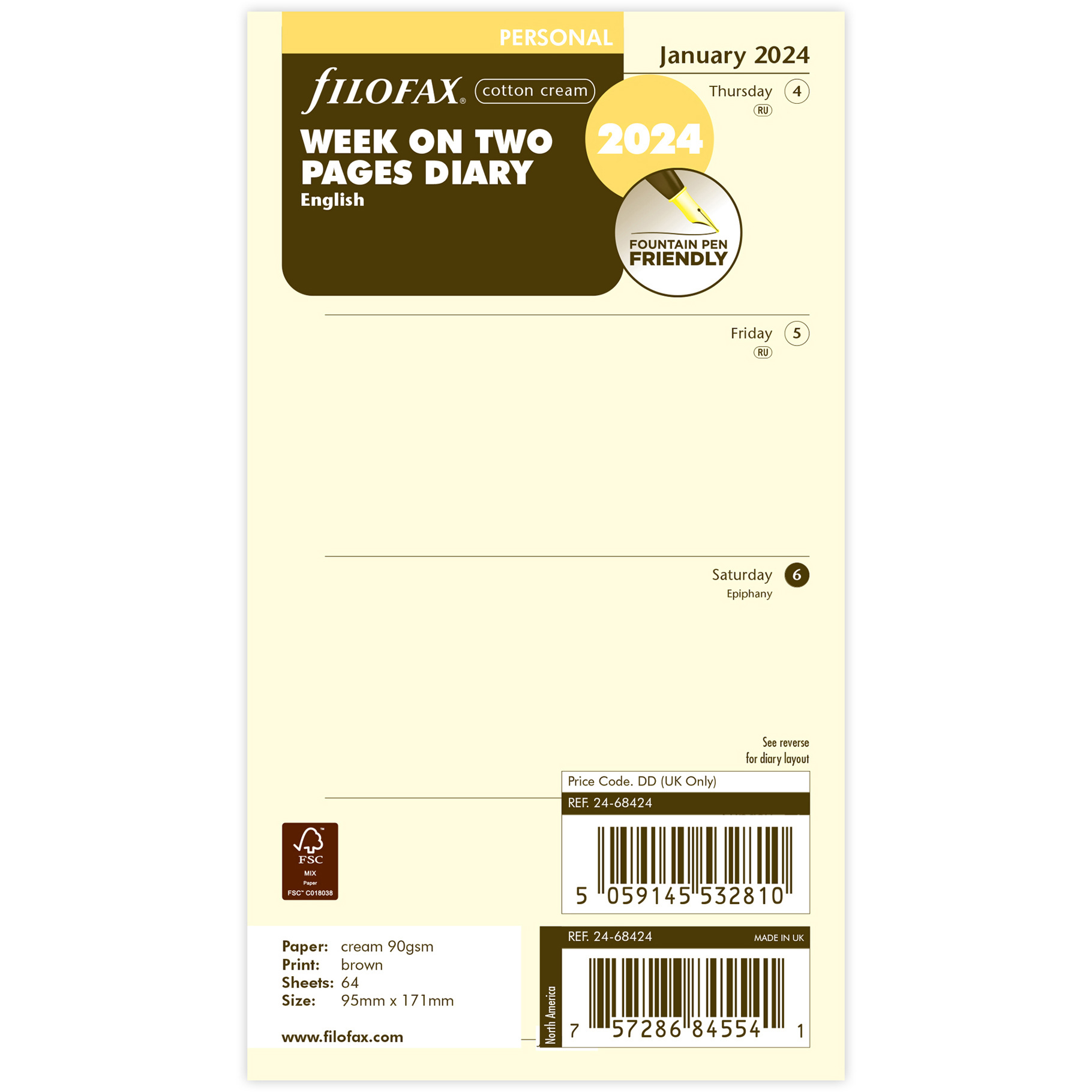 Filofax, Kalendář 2024 osobní, týden/2 strany, krémová, AJ