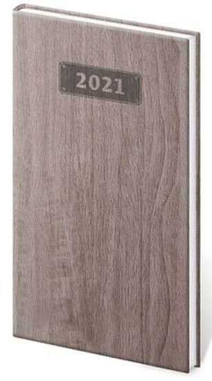 Diář 2021: Wood tmavě hnědá, kapesní týdenní, 80x150