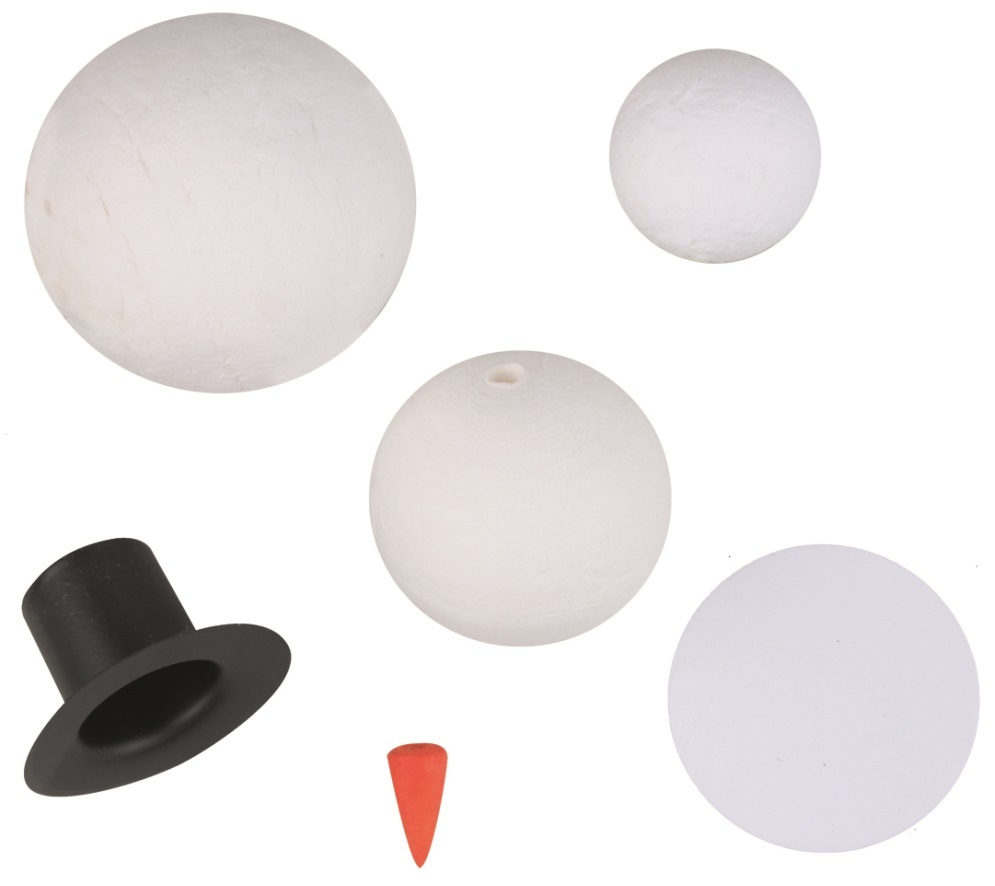 Komponenty k výrobě sněhuláka z buničiny 5 cm, 4,5 cm, 4 cm
