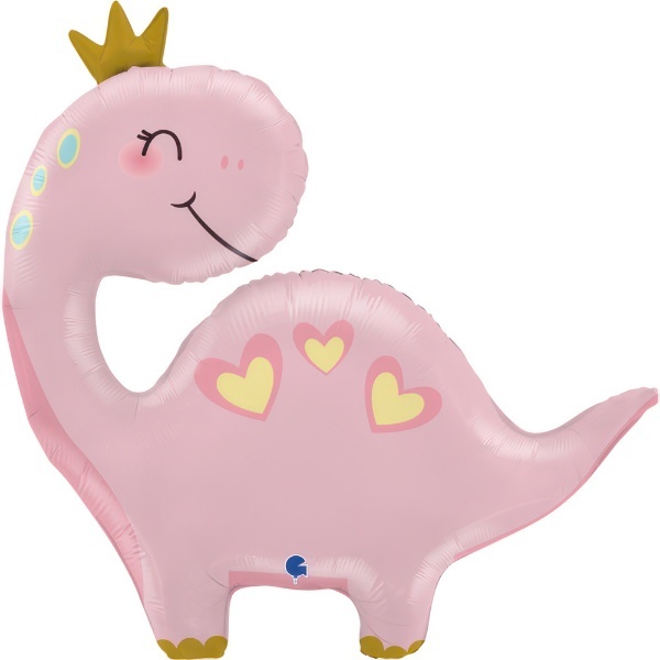 Růžový foliový balonek ve tvaru dinosaura s korunkou přinese každé narozeninové párty jedinečnou atmosféru a jistě zaujme malé i velké hosty. Skvělý doplněk nejen pro oslavy prvních narozenin, ale také pro tematické dinosauří párty, organické girlandy či jako originální dárek.