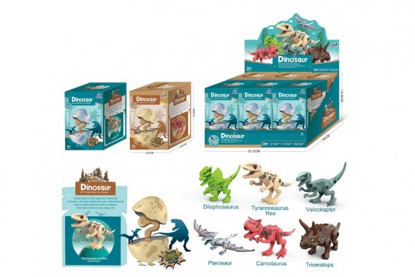 Dinosaurus šroubovací ve vajíčku plast 13cm 2 druhy v krabičce 9x9x14cm 6ks v boxu