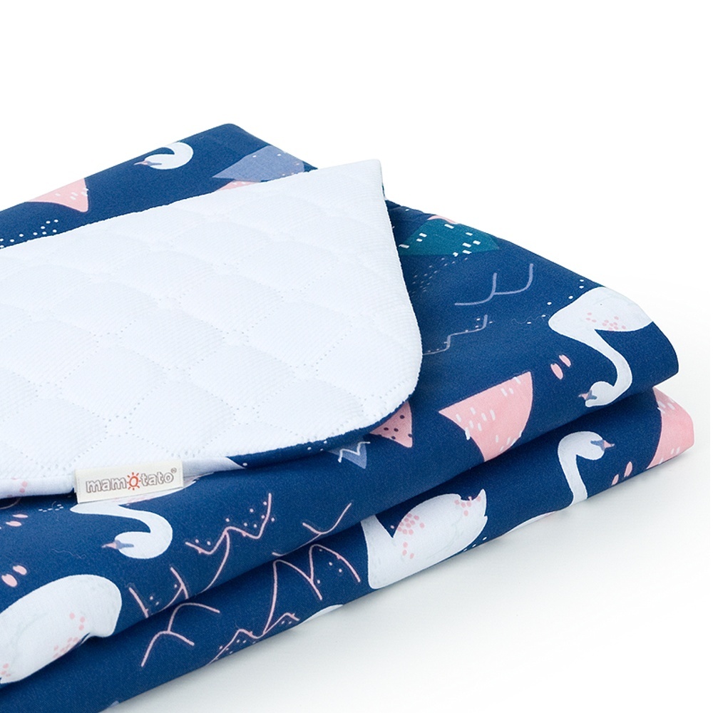 Mamo Tato Oboustranná dečka Velvet 75 x 100 cm - Labutě tm. modré/bílá; granát; 100 % bavlna, polyester