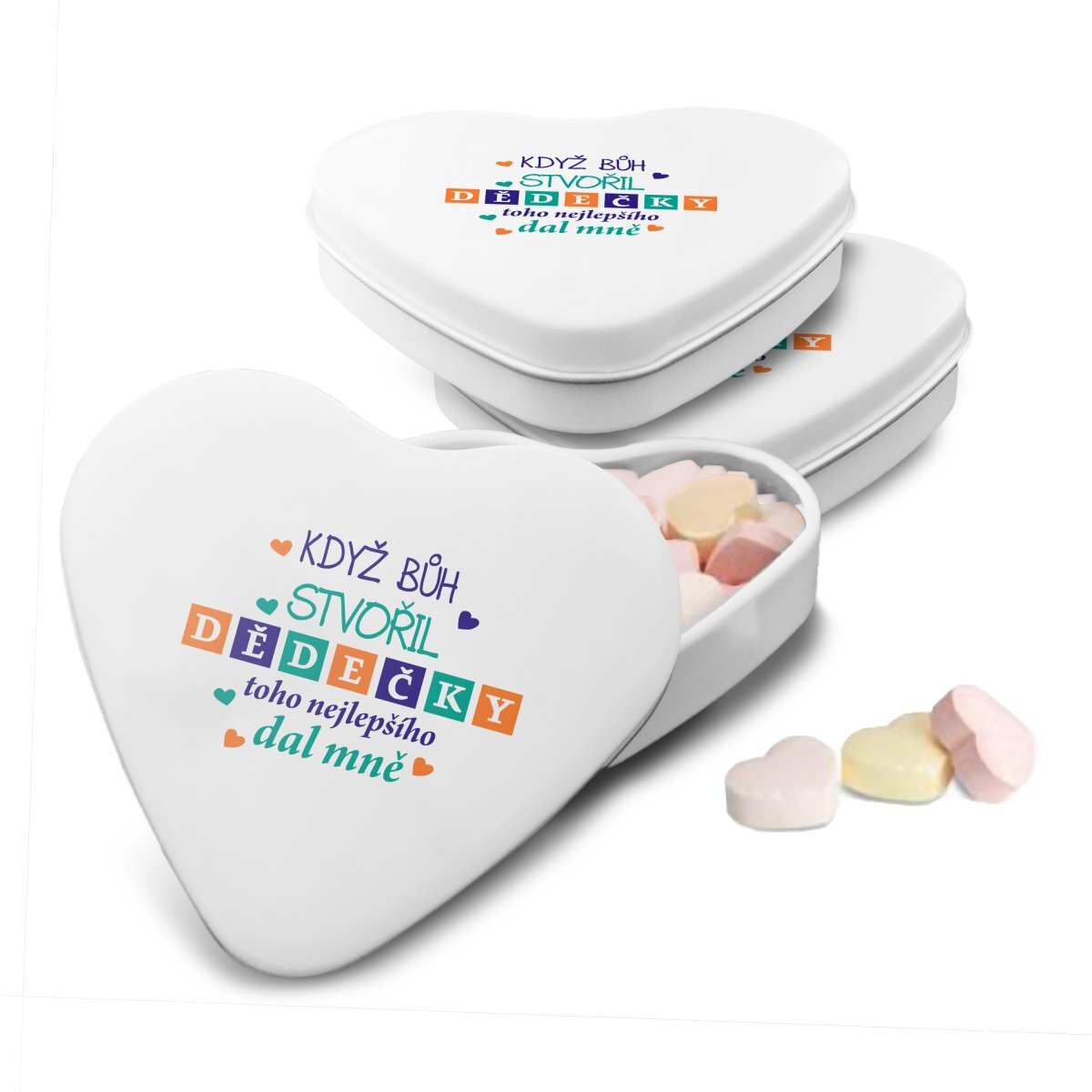 Bonbónky v srdíčkové krabičce s originálním motivemBonbónky jsou malým dárečkem pro potěšení a je vhodné darovat je jako doplněk s jiným dárkem z našeho e-shopu nebo v dárkové krabičce s ostatními produkty.Udělejte radost malým dárkem do kapsy, sladkými bonbóny v kovové krabičce ve tvaru srdce....