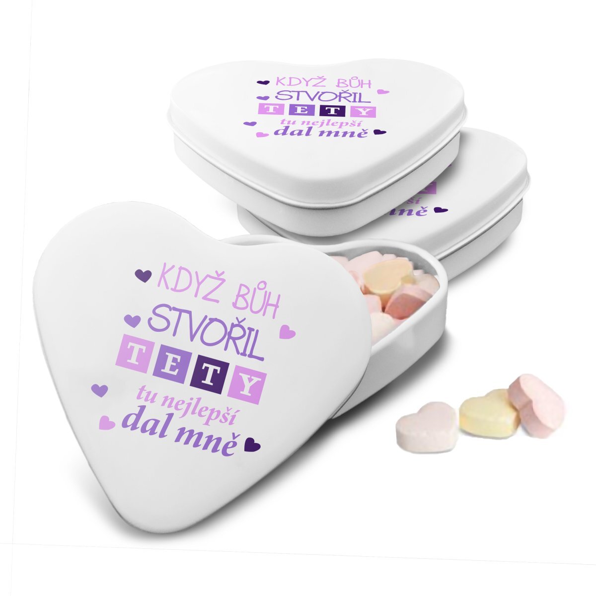 Bonbónky v srdíčkové krabičce s originálním motivemBonbónky jsou malým dárečkem pro potěšení a je vhodné darovat je jako doplněk s jiným dárkem z našeho e-shopu nebo v dárkové krabičce s ostatními produkty.Udělejte radost malým dárkem do kapsy, sladkými bonbóny v kovové krabičce ve tvaru srdce.... číst celé