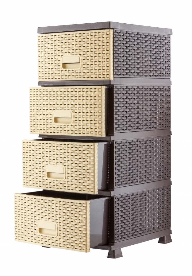 Mega Plast, RAF komoda polyratan, se zásuvnými šuplíky, 44 x 37 x 90,5 cm, wenge/krém