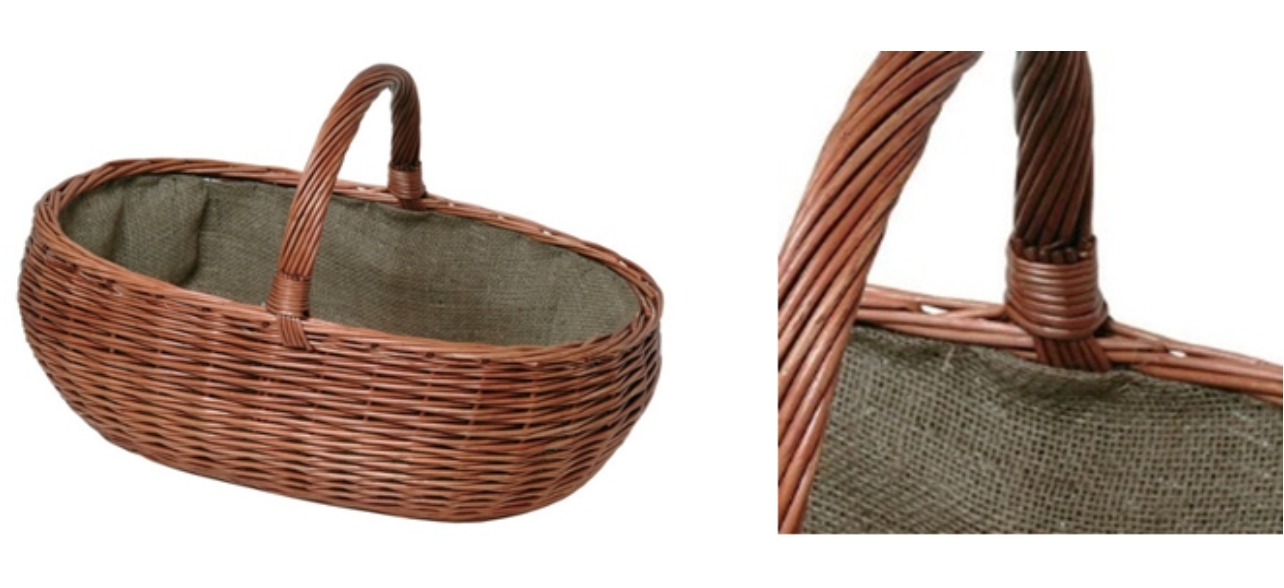 Proutěný oválný koš. Ručně pletený světlý koš na dřevo nebo jiné palivo, uvnitř potažený jutovou tkaninou zamezující propadávání nečistot z koše, je to výborný interiérový doplněk ke kamnům nebo krbu. Rozměr - 66,5 x 58 x 46 cm číst celé
