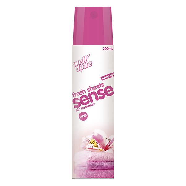 Sense - osvěžovač vzduchu s dokonalou parfemací Fresh Sheets Aromatherapy - 300ML Vhodný pro všechny bytové i kancelářské prostory. Velmi příjemná vůně s dlouhodobým vonným efektem, schopnost pohlcování pachů. Sprej je na vodní bázi.Balení 300ML NebezpečíStandardní věty o nebezpečnosti:H222...