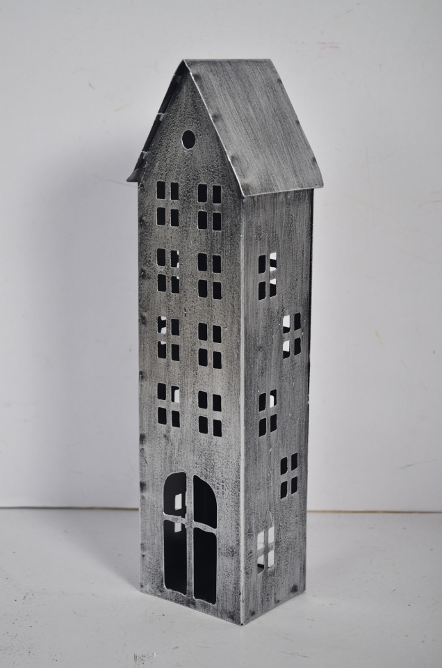 Kovový domeček je nejen dekorativní prvek, ale také praktický svícen, který díky svým rozměrům 30 x 8,5 x 6 cm snadno najde místo na poličce, parapetu či stole. Jeho stříbrná barva působí moderně a univerzálně ladí s různými styly zařízení. Vytvořte si klidné a útulné prostředí, kde si můžete odpočinout při jemném světle čajové svíčky.
