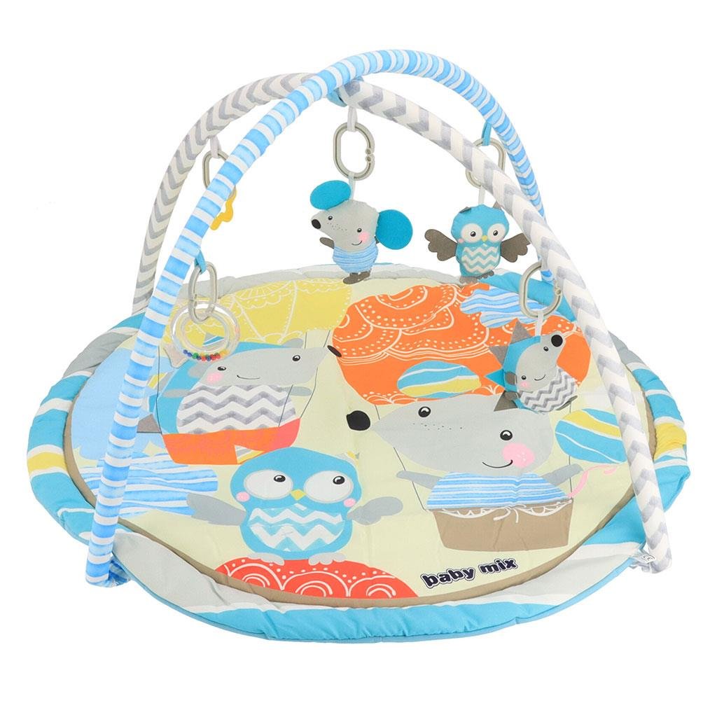 Hrací deka Baby Mix Malí přátelé je navržena s ohledem na potřeby nejmenších. Měkká polstrovaná plocha v krásném a svěžím designu láká k poznávání barev a tvarů, které pomáhají rozvíjet dětskou představivost. Hrazda se zavěšenými hračkami, například chrastítky a pískacími hračkami, stimuluje motoriku a zvědavost. Hračky a hrazdička jsou snadno odnímatelné, díky čemuž přizpůsobíte prostor přesně podle potřeb vašeho dítěte.