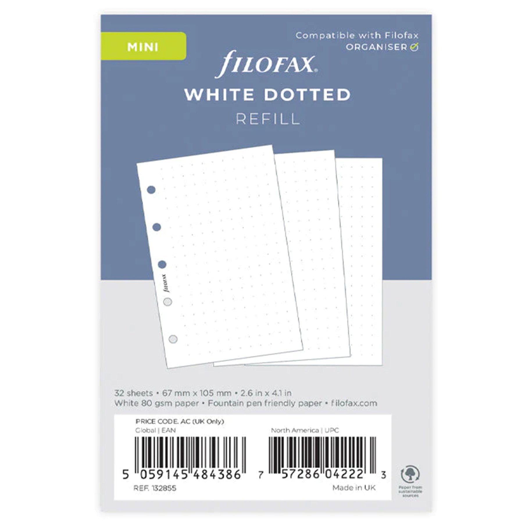 Filofax, Papíry pro diáře, tečkované, mini, bílá
